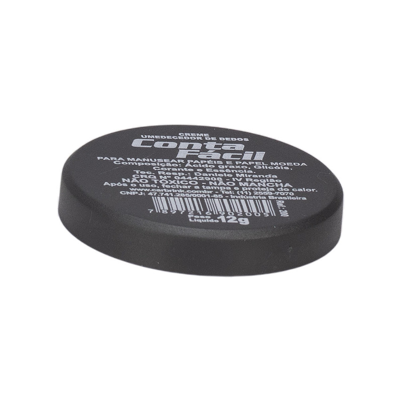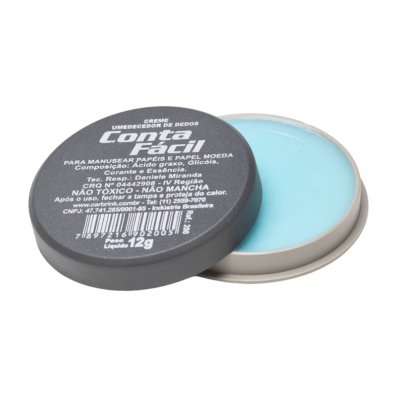 Base plástica redonda com 12g de gel umedecedor de dedos. Ajuda no manuseio de cédulas e papéis em geral. Com ação germicida, evita a contaminação e ressecamento da pele. Não engordura os papéis e possui um aroma super agradável.