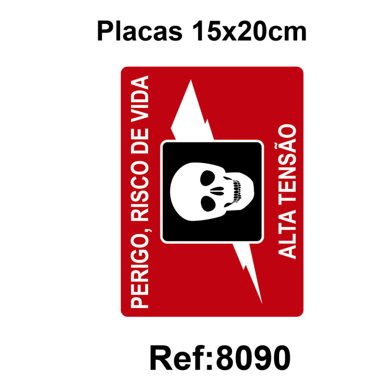 8090 PLACA PERIGO RISCO DE VIDA ALTA TENSÃO 15X20 CM