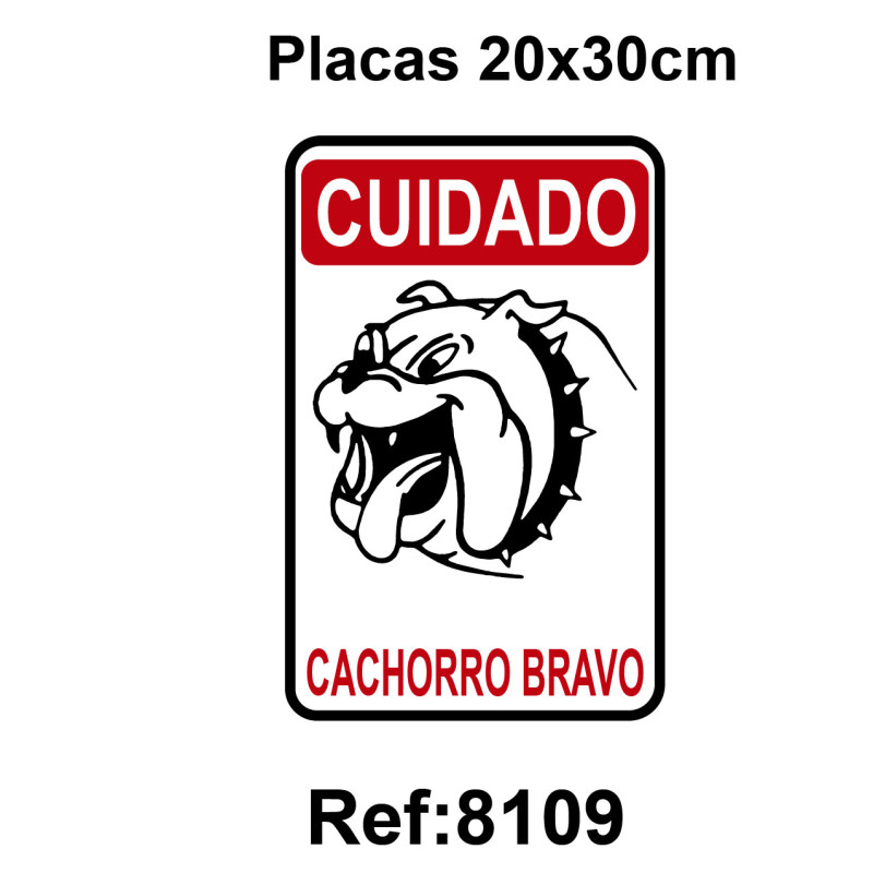 8109 PLACA CUIDADO CACHORRO BRAVO 20X30CM