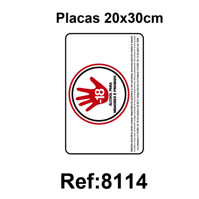 8114 PLACA PROIBIDO VENDA DE BEBIDAS ALCOOLICA P/ MENORES DE 18 ANOS 20X30CM